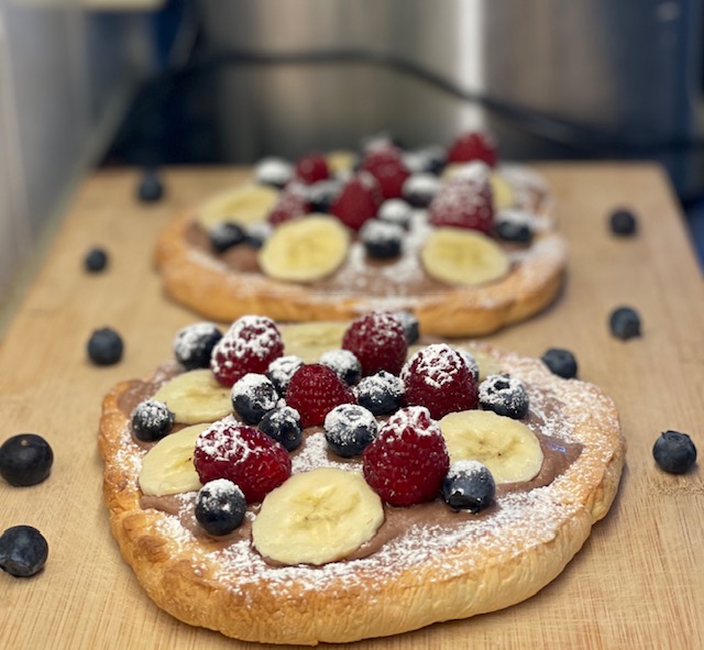 2. Ta fram pizzadegen och forma till en rund pizza. Jag gjorde två små pizzor istället för en stor. Om du tycker att det är svårt att forma pizzadegen kan du istället stansa ut två stora cirklar med hjälp av t.ex. en skål.