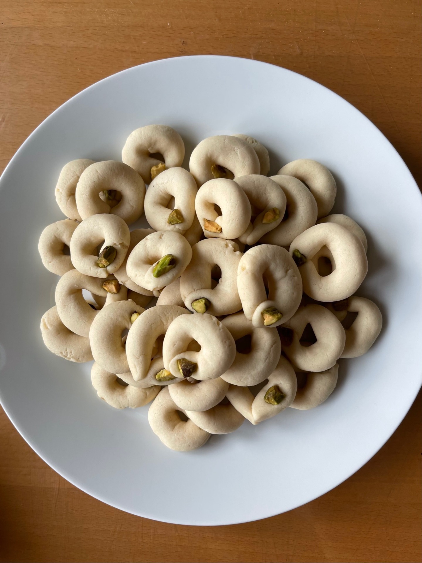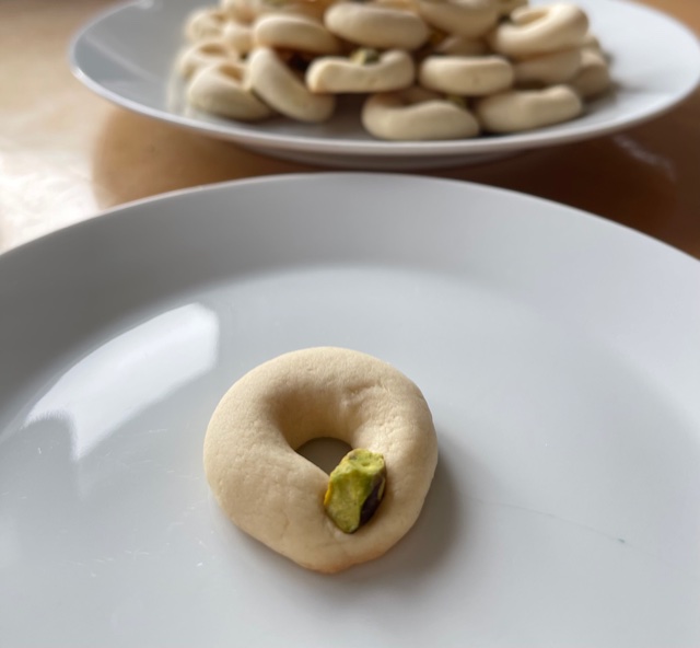 Ghraybe är mördegskakor från Syrien, garnerade med en intryckt pistage på toppen!