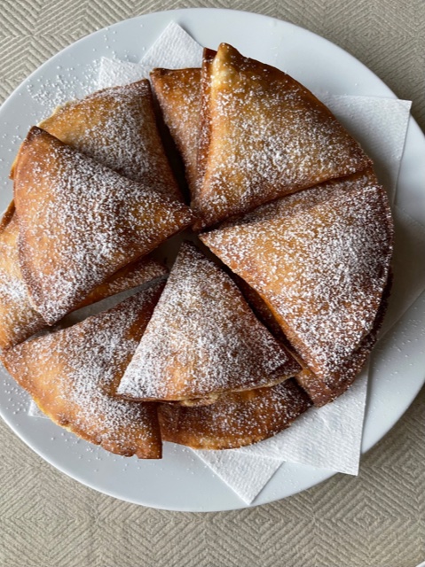 6. Låt svalna och rinna av på hushållspapper. Pudra sedan på florsocker.